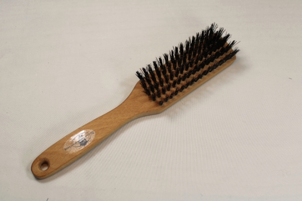 Diese aus kurzen, extra harten Wildschweinborsten, gefertigte Haarbürste wird selbst mit dichtestem Haar fertig. Sie eignet sich sogar zum Aufbürsten von Schaffellen. Flache Ausführung mit 5 Reihen Wildschweinborsten.