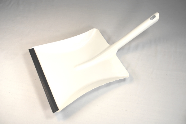 Aus stabilem Stahlblech gefertigte, weiße pulverbeschichtete Kehrschaufel mit Gummilippe