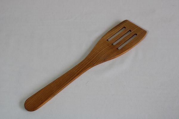 Dieser geschlitzte Pfannenwender wird gerne verwendet, um Bratgut schon über der Pfanne abtropfen zu lassen.