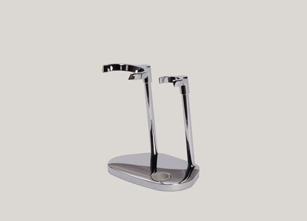 Doppelständer für Pinsel und Rasierer in schwerer und hochwertiger Ausführung aus verchromtem Messing.